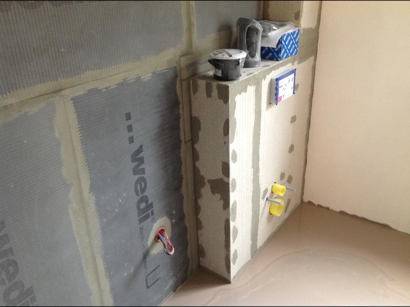 WC suspendu + habillage murs SDB avec plaques WEDI