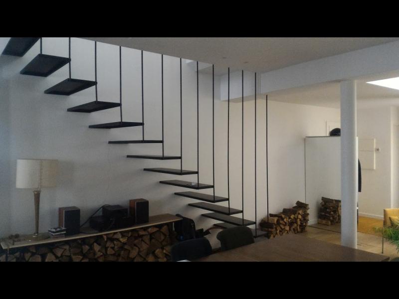 Aménagement d'une cuisine et création d'un escalier en acier sur mesure