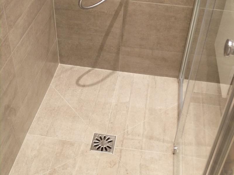 Receveur de douche carrelé idem le sol et les murs